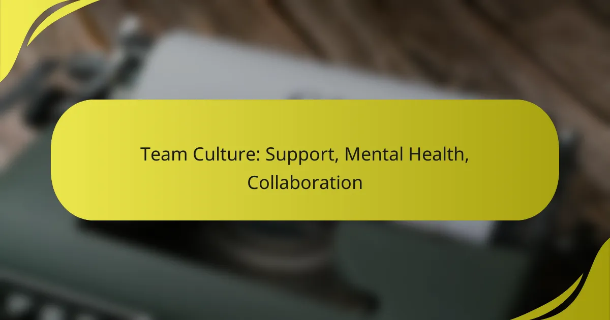 Team culture is essential for promoting mental health and well-being in the workplace, as it nurtures an atmosphere of support and collaboration. By prioritizing open communication and fostering strong relationships, teams can effectively reduce stress and feelings of isolation among members, leading to a more cohesive and productive environment.
